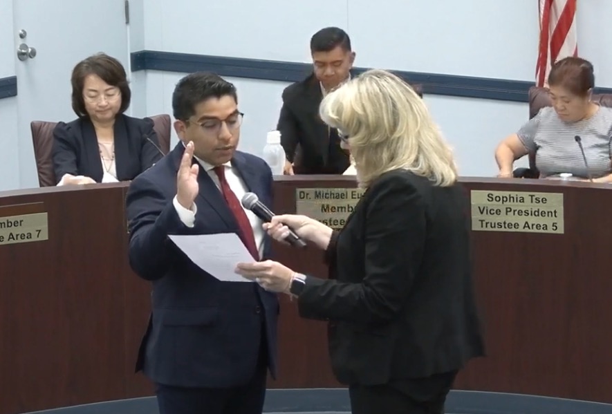 Francisco Noyola is sworn in by ABCUSD Superintendent Dr. Gina Zeitlow.