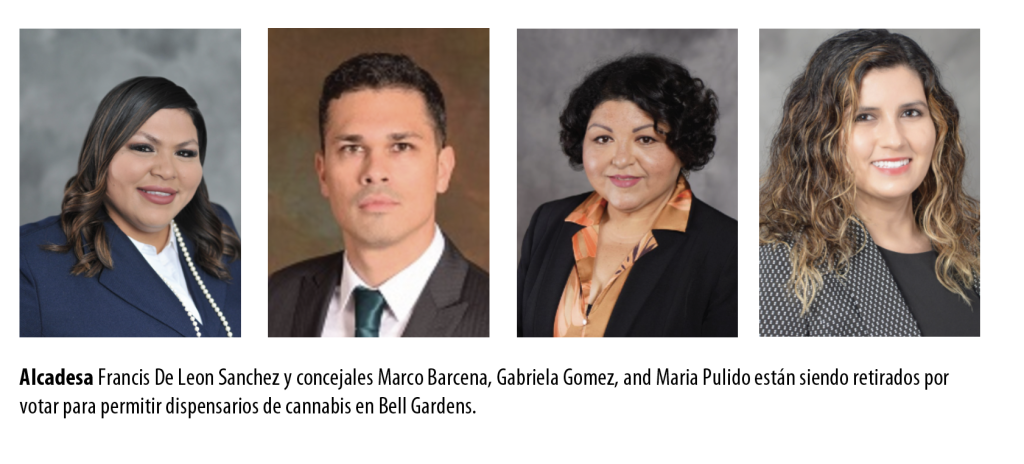 El alcalde de Bell Gardens, Francis de León, y el administrador de la ciudad, Michael O’Kelly, declararon: “La ciudad no ha recibido solicitudes para la venta de marihuana en este momento. El Concejo Municipal consideró y aprobó un proceso para vender productos de cannabis para aumentar los ingresos de los programas comunitarios que directamente beneficiar a los residentes de Bell Gardens”.