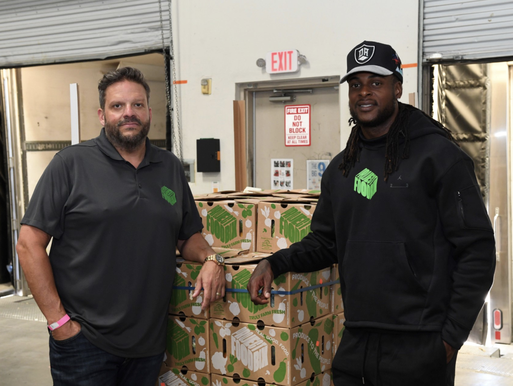 Pictured (left) is Steve Brazeel, Founder and CEO of SunTerra Produce, a family-owned minority grower and produce distribution company, with a Project Foodbox worker. Project FoodBox got started during the pandemic, and is thriving today providing “food as medicine” to those in need.