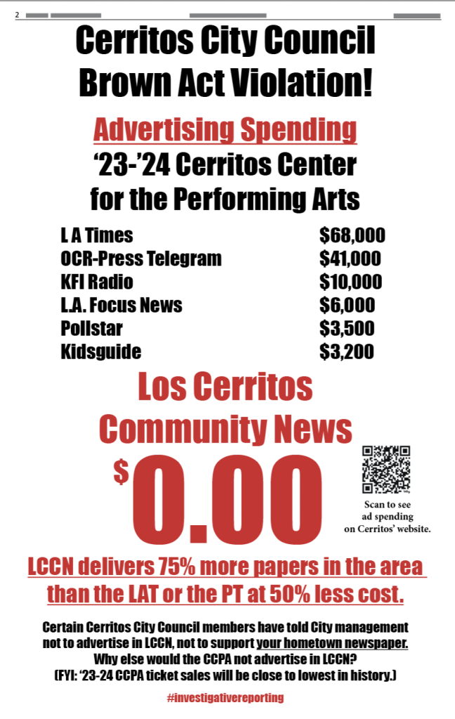 Los Cerritos Community News has found that well-documented investigative journalism involving certain Cerritos City Council members has a price. Check out the blatant abuse of power below.