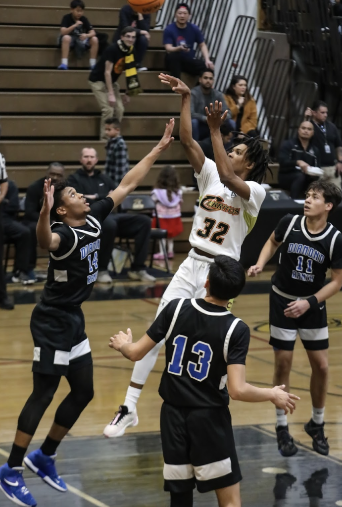 The Panthers began the fourth quarter on a 9-2 run to take a 54-49 lead with 5:18 left in the game. However, the Cerritos defense clamped down and limited Diamond Ranch to three of eight shooting down then stretch. Meanwhile, Pema drained another long shot with five minutes left, then junior Benson Cho scored his only basket of the fourth quarter followed by a free throw from senior Osinachi Agaranna and another three-point play from Pema. Just like that, the Dons had a four-point lead with 2:59 remaining.