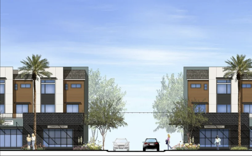 Eginhouse is located north of the 91 Freeway, on Arkansas Street and Pioneer Boulevard. The project will offer a mix of features, including 4,544 sq. ft. of commercial space, fifty-nine three-story eco-forward, solar, all-electric townhomes, and 22 live/work flex spaces.