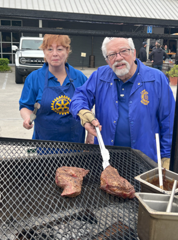 Tania Whiteleather, BBQ & Brews Chair and club president Curt Kurtz tend to Shady Grove Food’s BBQ grill in preparation for the Rotary Club’s big event.