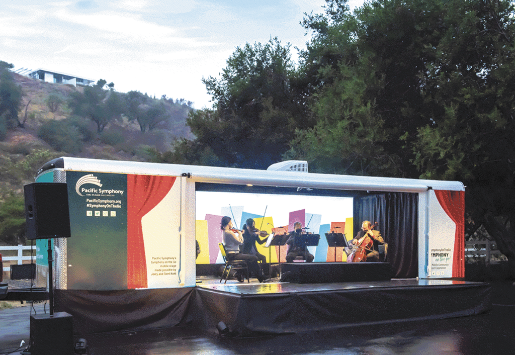 The mobile stage is a generous gift from philanthropists and ardent Pacific Symphony supporters, Jerry and Terri Kohl. Their dedication to making music accessible to all has made this initiative possible, allowing the Symphony to reach new audiences and bring communities together through the universal language of music.