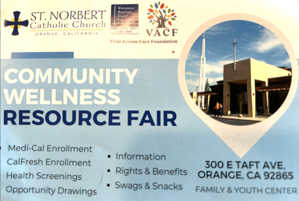 St. Norbert’s Catholic Church in Orange will be holding a free Community Wellness and Resource Fair this Sunday July 21, 2024 from 10 a.m. to 4 p.m. at its Family and Youth Center.