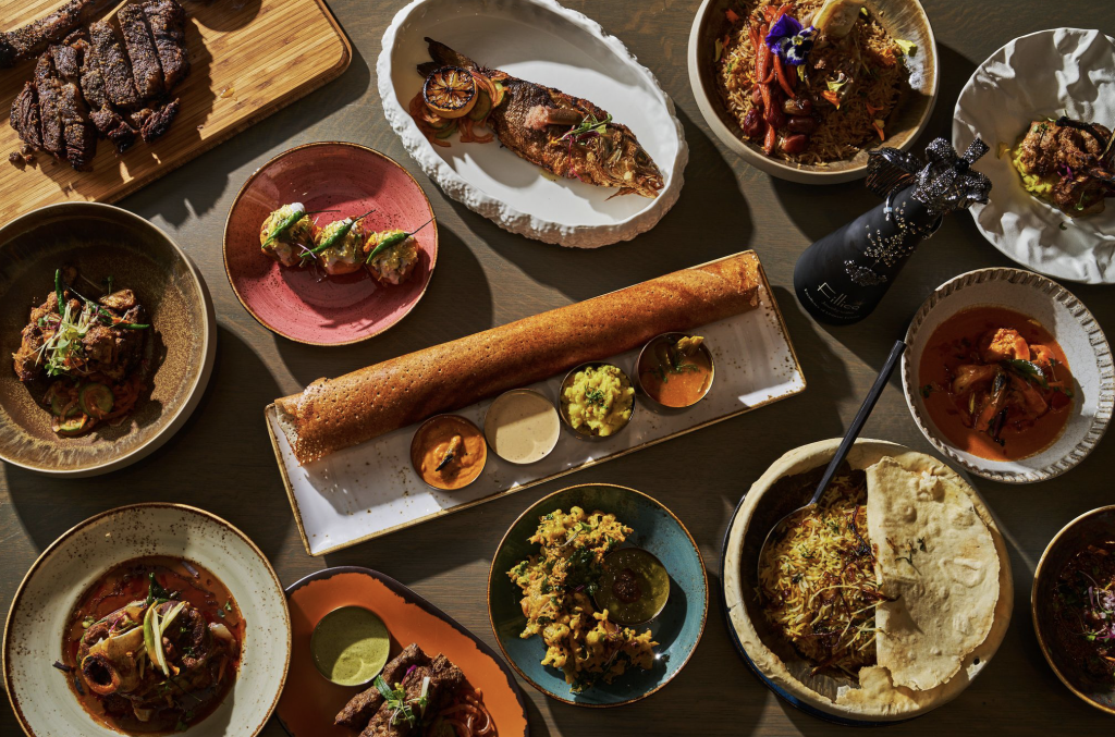 The weekday programming complements SHOR’s curated, chef-driven menu, featuring traditional South Asian street food like the Paper Dosa and the Goat Cheese Kulcha (Stuffed naan topped with parmesan cheese, brushed with truffle oil, and butter sauce), elevated halal cuts of meat such as the Tomahawk Kabob with “Australian Wagyu” Beef, and shareable plates like the noted Shanwari Karahi featured in Neverending Karahi Tuesdays. SHOR’s BOGO Mocktail offerings showcase the restaurant’s pioneering non-alcoholic mixology program, featuring innovative creations like the Sunset, the Butterbeer, or limited-time summer beverages like the Chikoo-tini (Sapodilla fruit, jaggery, and black lava salt).