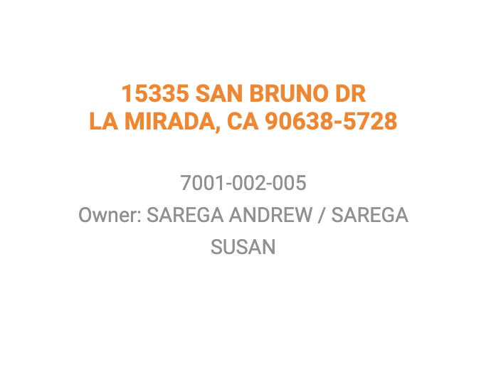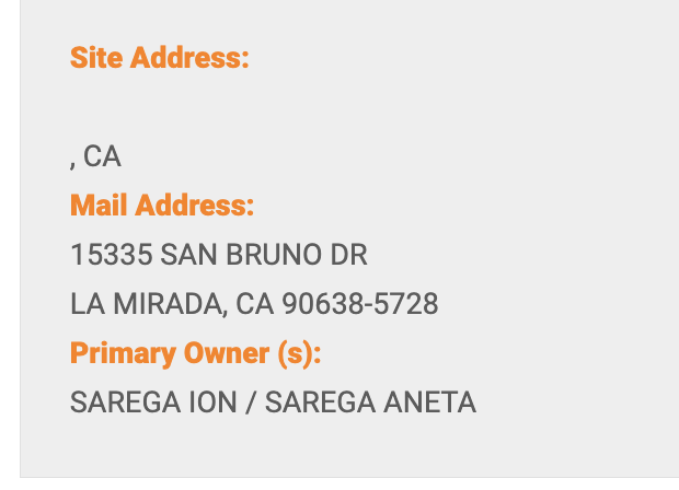 The subject property’s address for correspondence is a home located at 15335 San Bruno Dr. in La Mirada; according to Orange County Title online records, the owner of the house is Sarega’s son and former La Mirada Councilman, who recently resigned, Andrew Sarega.