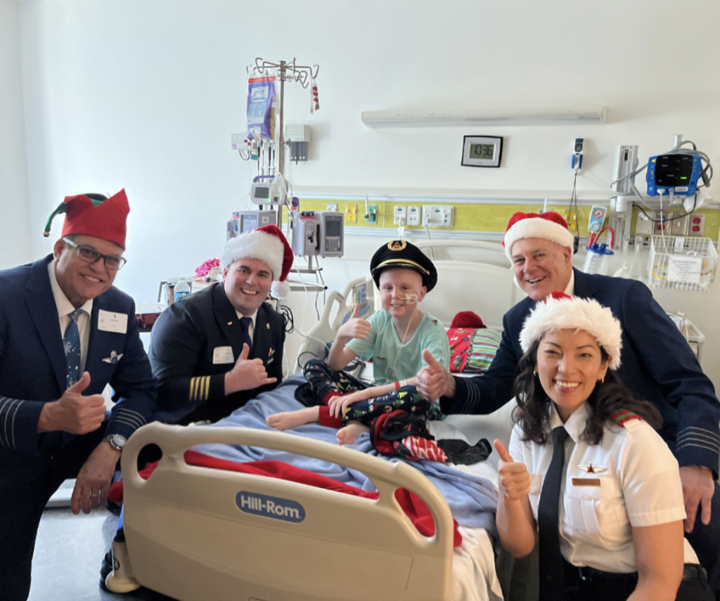 With tales of adventure and toys creating a festive atmosphere, the pilots provided a temporary escape from the challenges of medical treatments, offering young patients a precious opportunity to embrace the joys of childhood. Ronan, a 12-year-old patient at the Jonathan Jaques Children’s Cancer Institute, lit up with excitement as he chatted with the pilots about planes and flying. His smile grew even bigger when they handed him a pilot’s hat, a moment that made him feel like part of their crew.