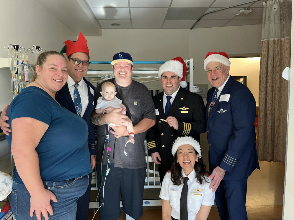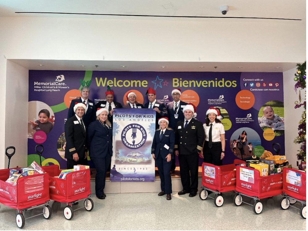 MemorialCare Miller Children’s & Women’s Hospital was filled with smiles and laughter during a special visit from the global organization, Pilots for Kids, on Tuesday, Dec. 17. For over a decade, Pilots for Kids, dedicated to supporting and bringing joy to hospitalized children, has partnered with the Cherese Mari Laulhere Child Life Program at Miller Children’s & Women’s Hospital. The dedicated pilots and crew members made personal bedside visits to share their most captivating flying stories, inspiring children with tales of adventure. Additionally, they generously donated toys and gift cards, spreading cheer and leaving a lasting impact on children and families.