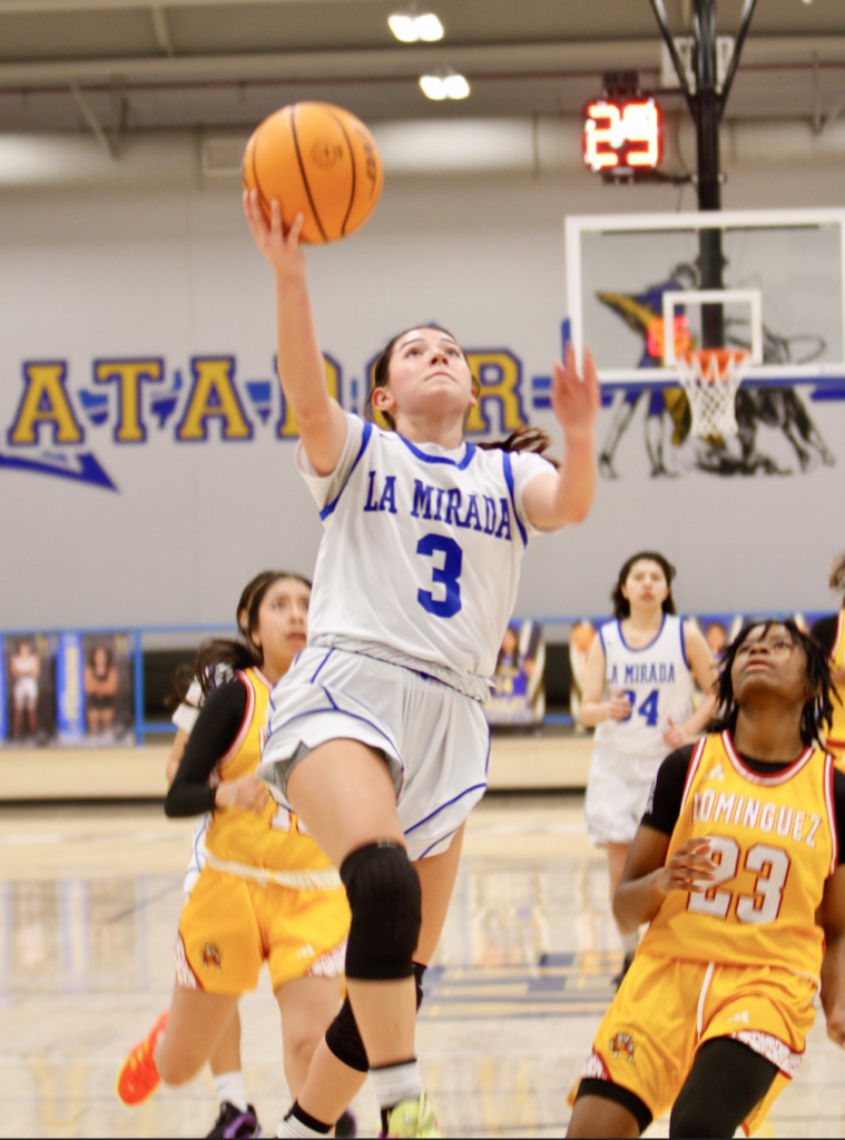 La Mirada went up 21-18 with 5:01 left in the first half before Jocelyn Luis and Mya Harris had consecutive baskets to give the Dons the lead. Moments later, Kayla Scott gave Dominguez a 25-22 lead before Arreguin had her first theft of the game, then fed a pass to sophomore Jordin Shaw who scored. With 11.8 seconds left in the half, senior Hailey Medrano’s pass to senior Emily Gonzalez gave the Matadores (15-10, 8-1) a 26-25 halftime lead.