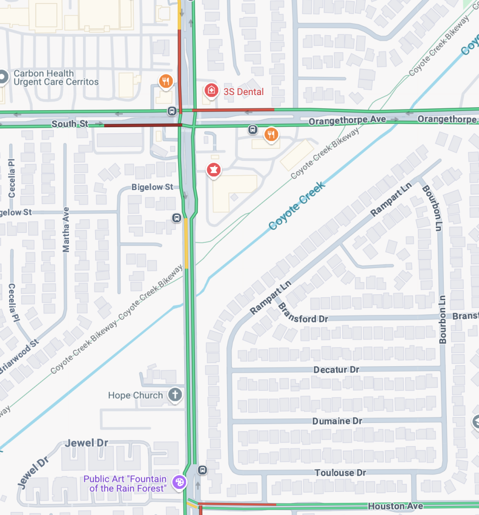 Los Angeles County deputies responded to reports of a shooting death in the Coyote Creek Riverbed area, west of Carmenita Road in Cerritos, at 12:30 p.m. which would put the incident near Carmenita and South Street.