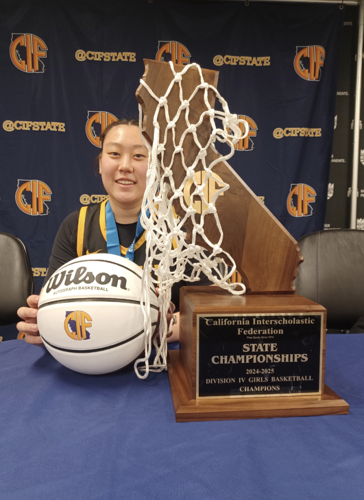 Whitney High senior Haylie Wang is all smiles as her illustrious high school career ends with a CIF State Division IV championship. Wang paced the Wildcats with 727 points this past season in 35 of the 37 games the team played and posted a career-high 46 points against Artesia High on Jan. 24. She also eclipsed the 30-point mark three other times. PHOTO BY LOREN KOPFF.